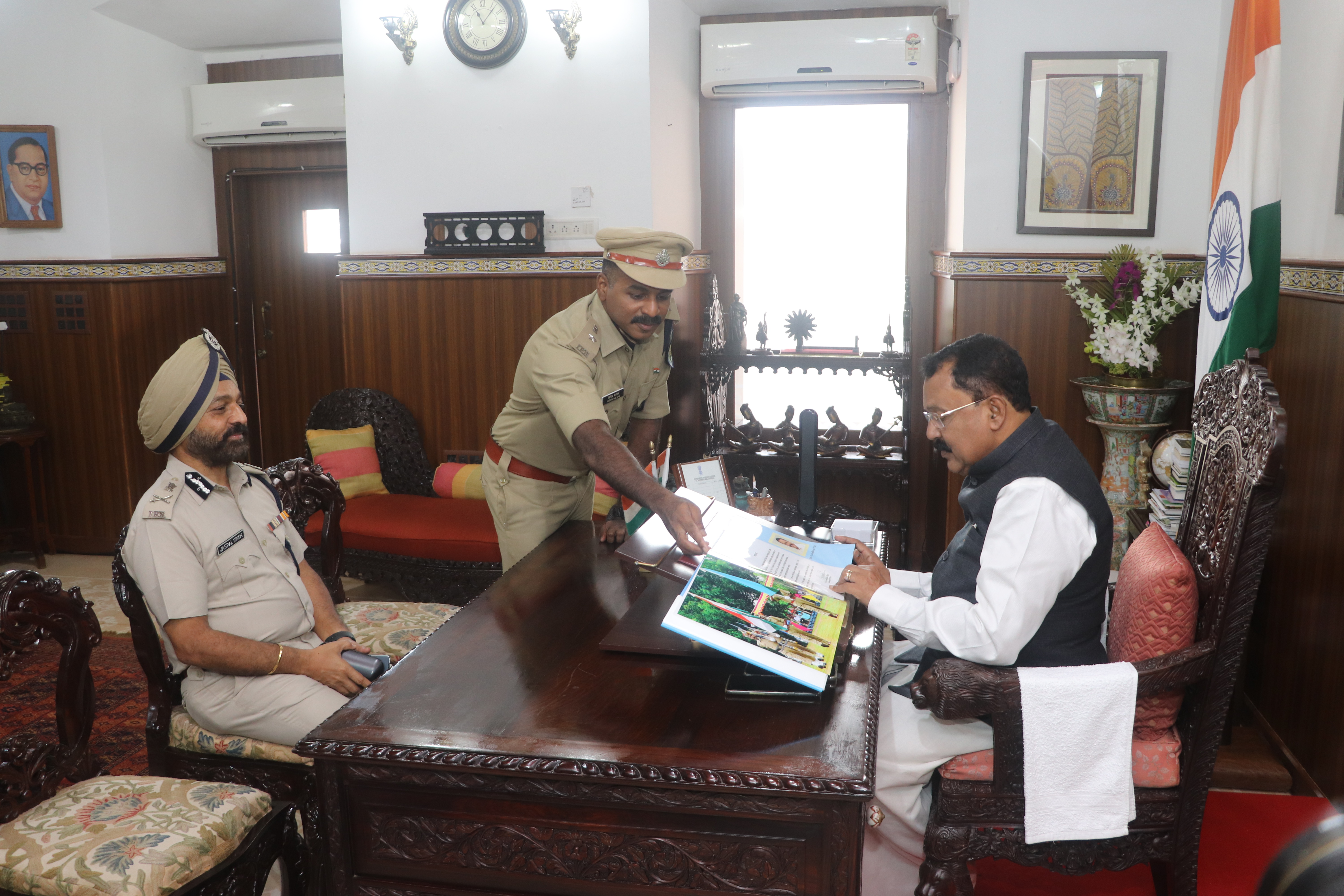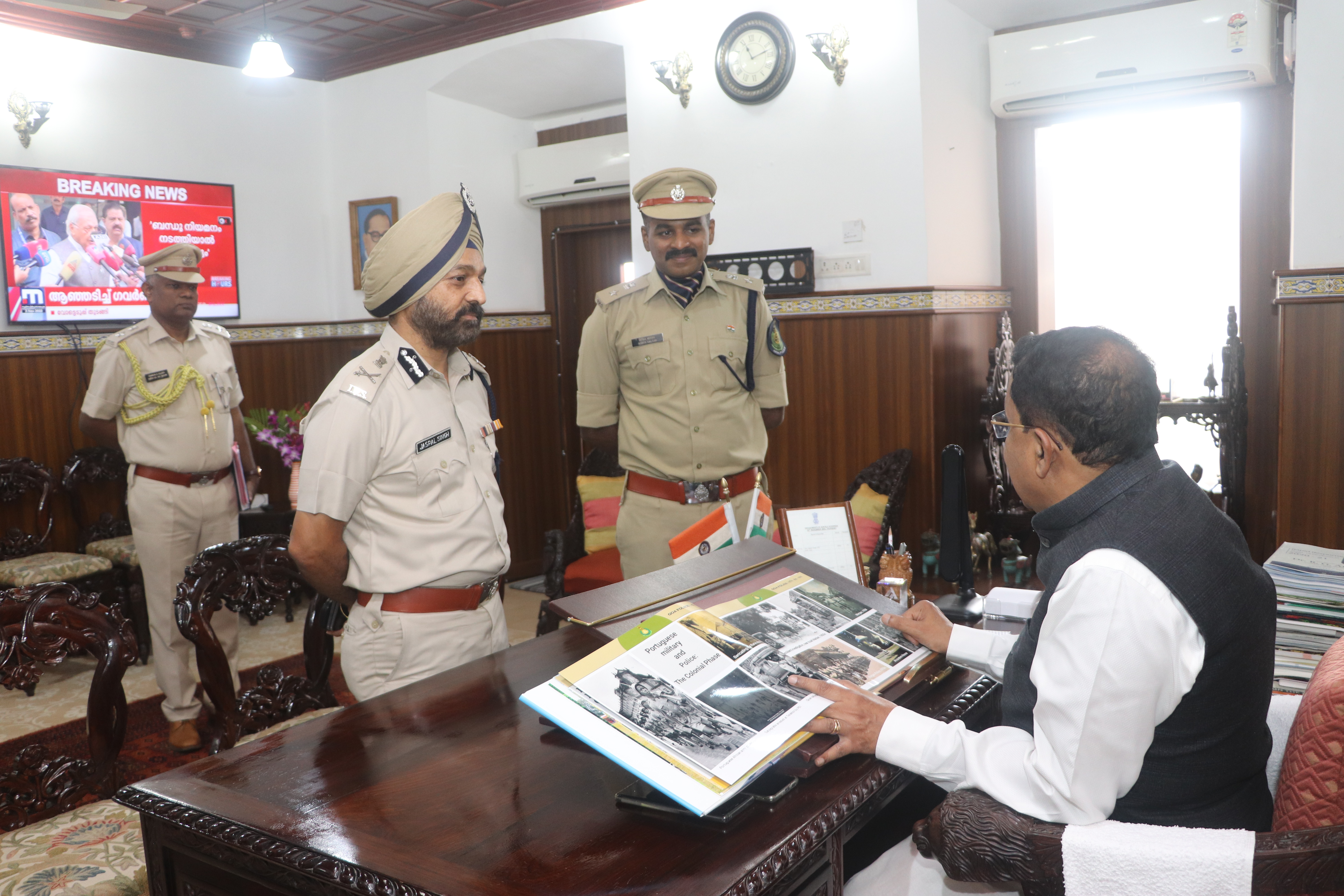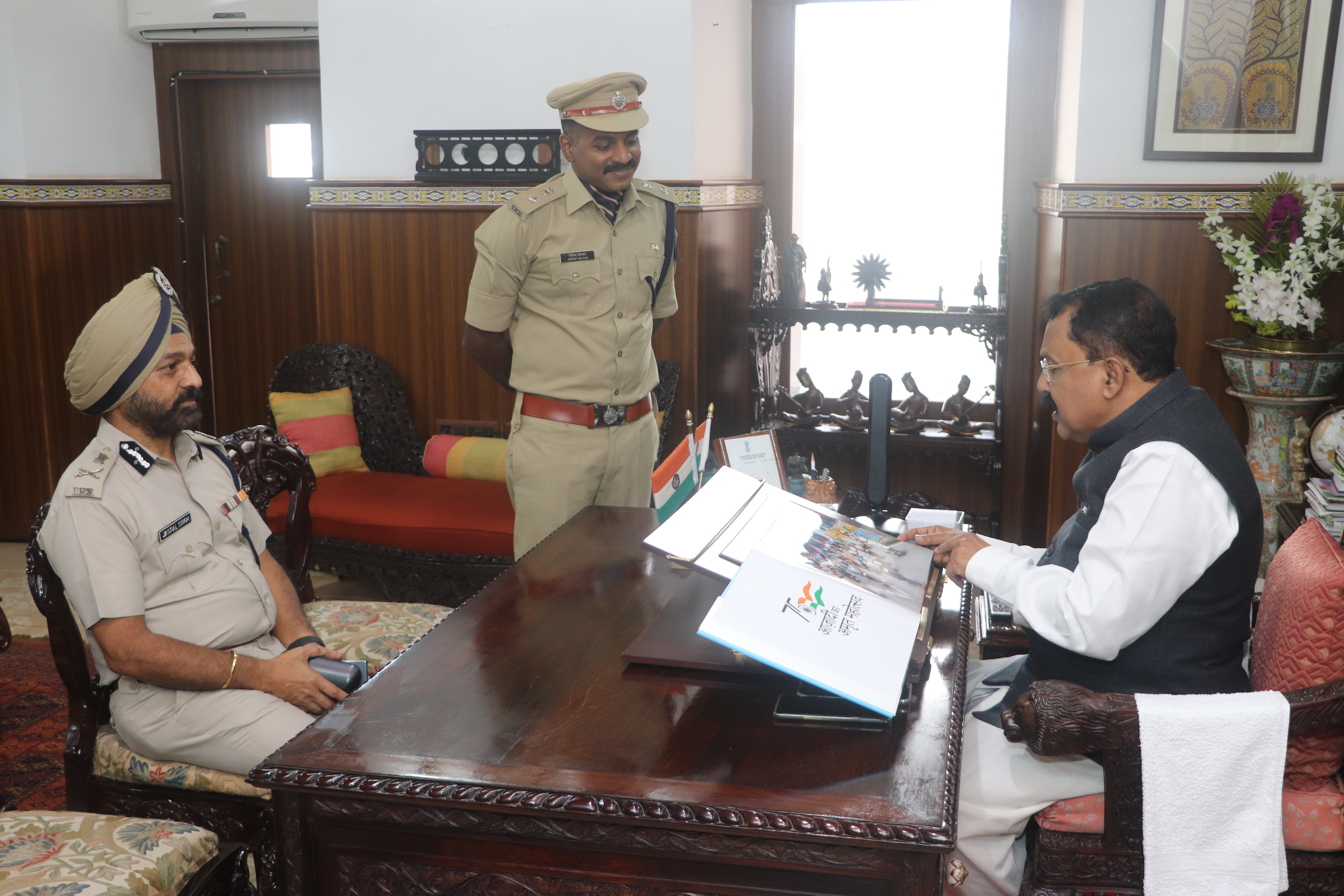 Photos of honourable DGP Goa Presenting Coffee Table Book of Goa Police to honourable Governor of Go