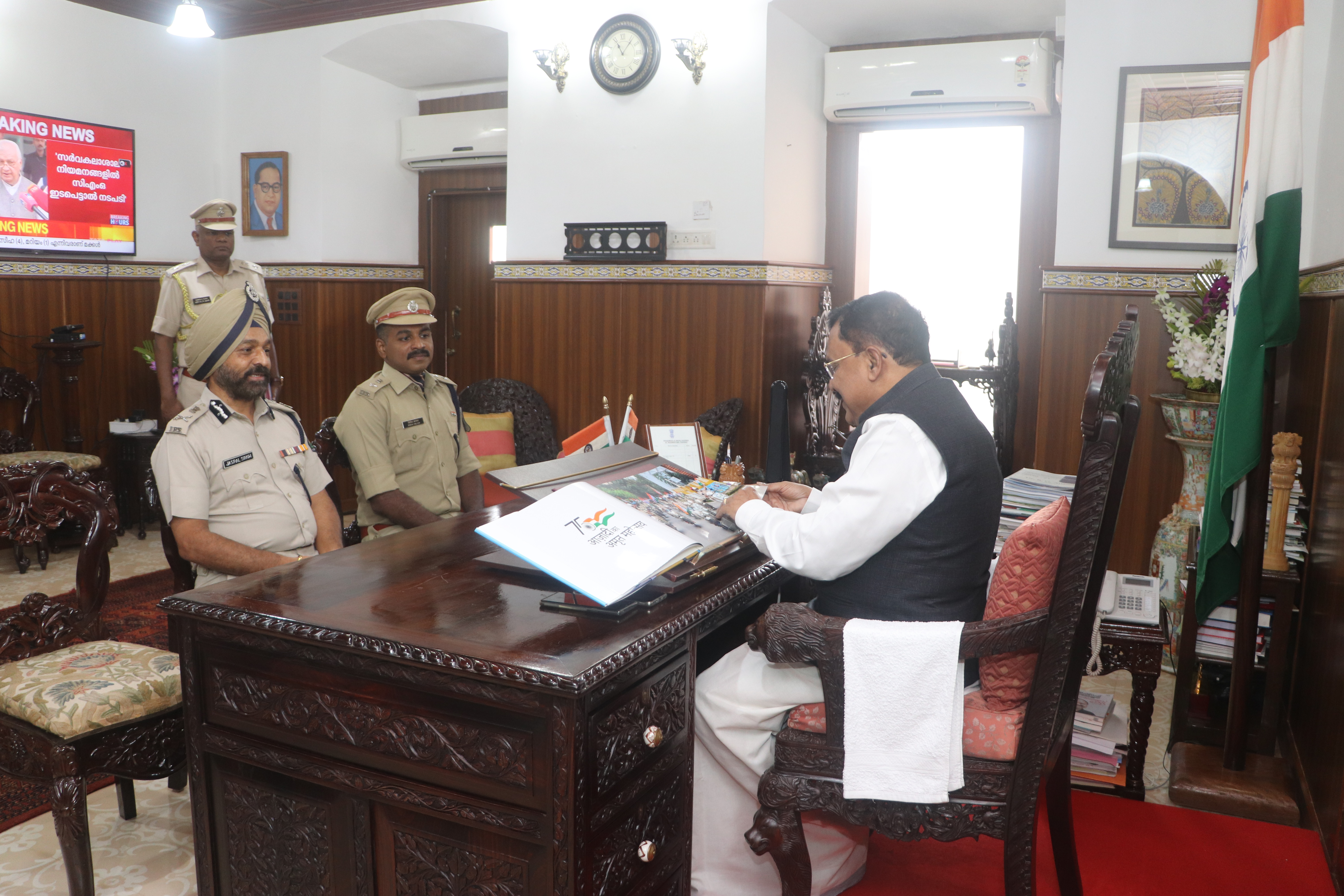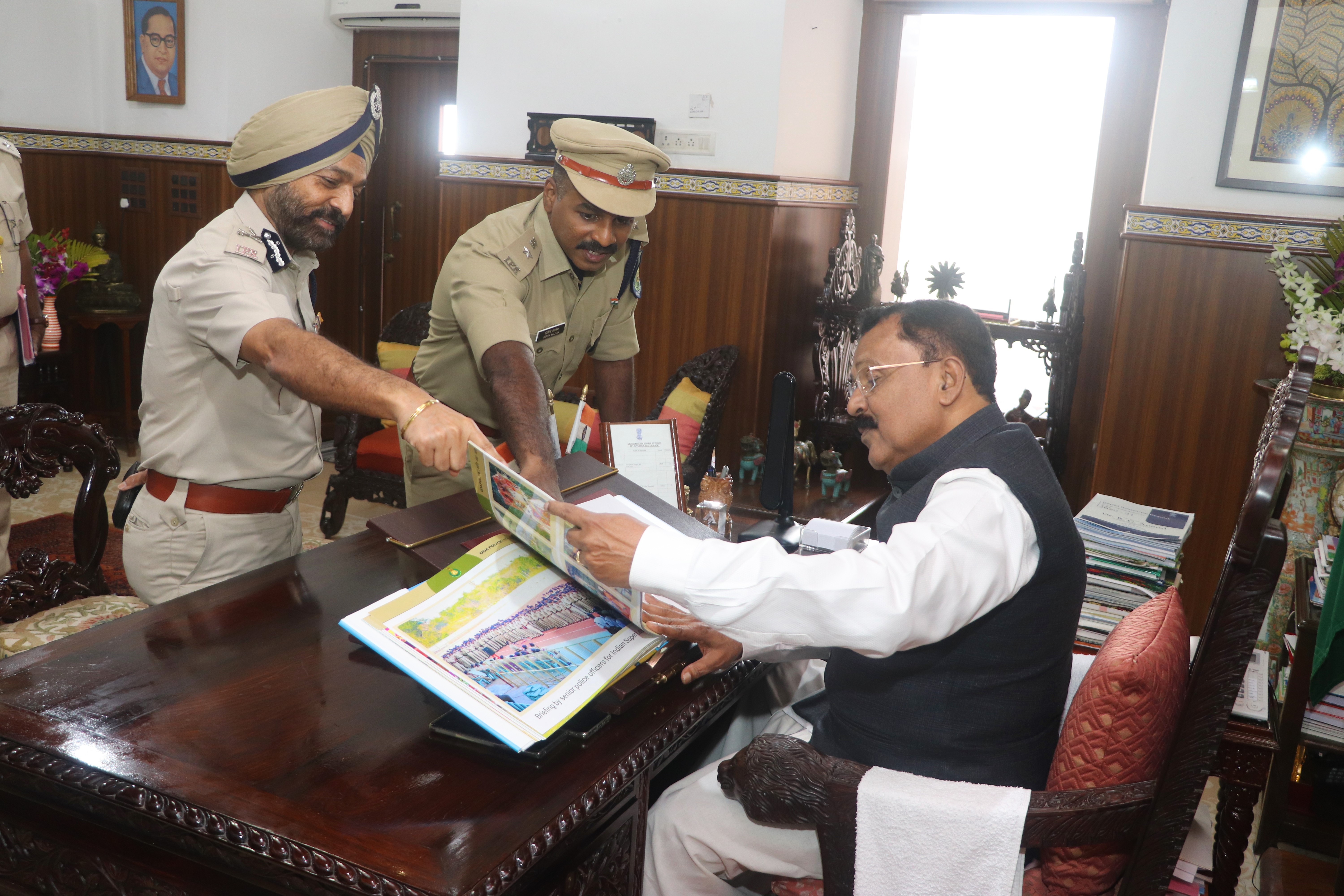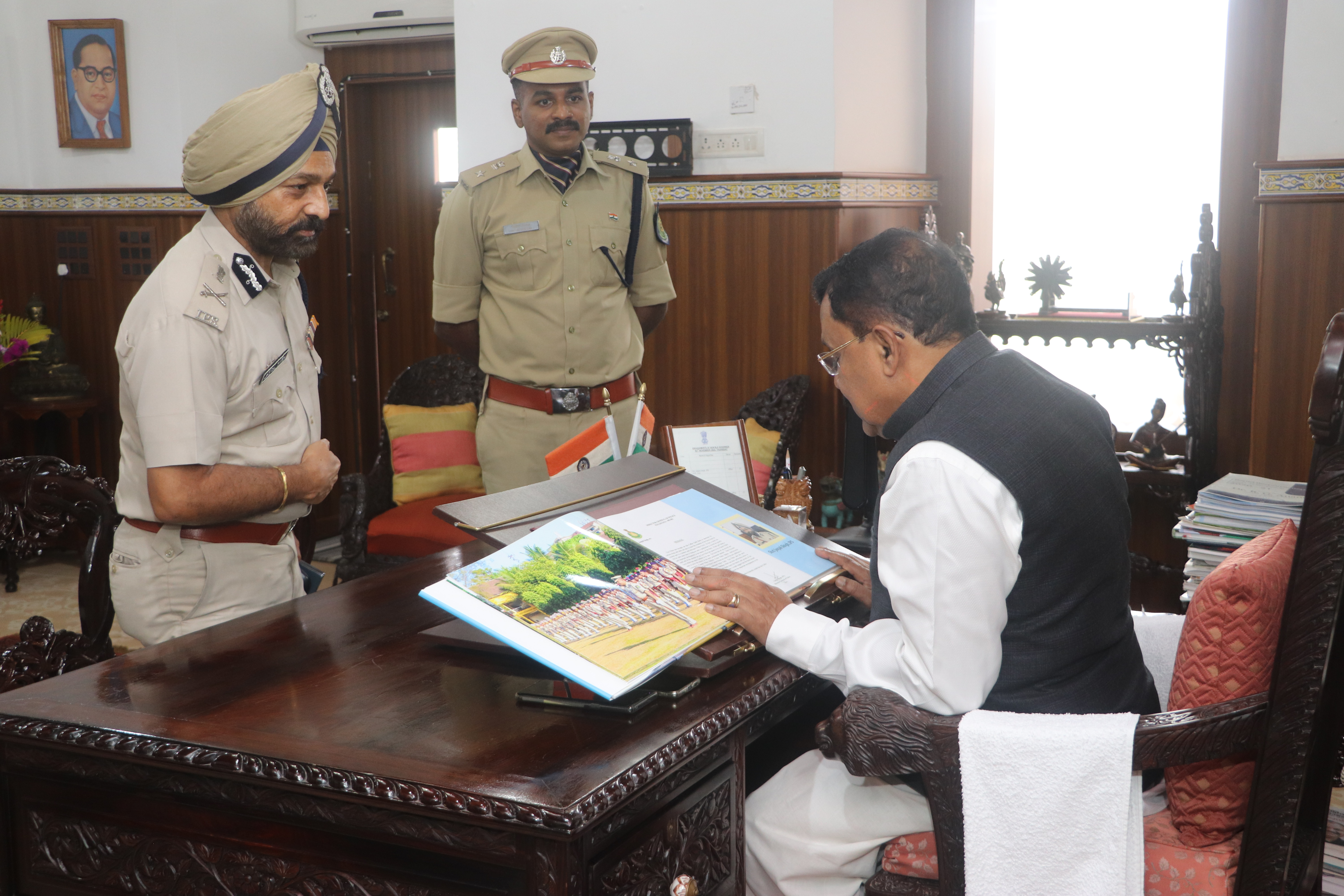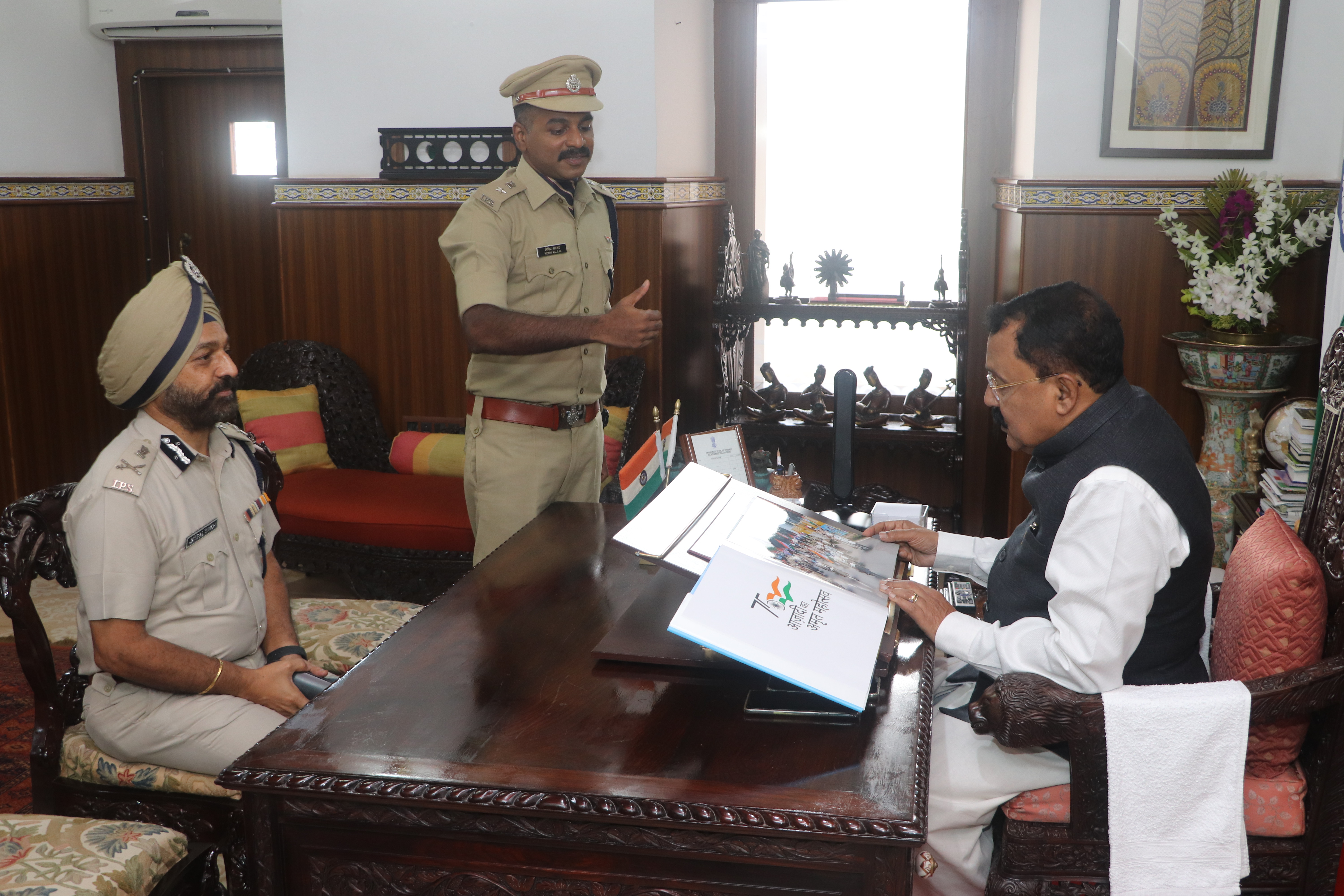 Photos of honourable DGP Goa Presenting Coffee Table Book of Goa Police to honourable Governor of Go
